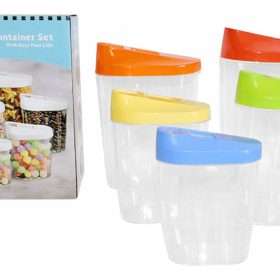 The 10 piece container set with easy pour lids are portable food containers come in five different sizes. You can easily see what's inside each container and know when to refill. It keeps food fresh in airtight and dust proof environment. This is a great way to keep your kitchen organized and saves space at the same time.